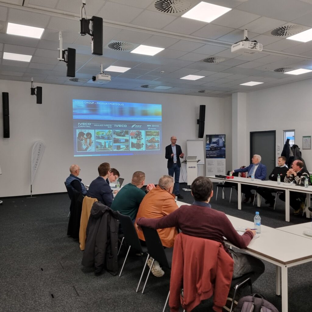 Anfang Februar hat das HyWheels Hessenflottencluster einen Betriebsausflug zu IVECO nach Ulm gemacht. Vor Ort wurde uns nicht nur die breite Palette der IVECO zero-Emission Nutzfahrzeugpalette vorgestellt, sondern auch bei einer Werksführung einen spannenden Einblick in die Produktion gegeben. Das Highlight war die Fahrt mit dem neuen 700 bar IVECO Wasserstoff-Truck. Wir freuen uns sehr, wenn die Fahrzeuge von IVECO auch ab 2025 in Hessen unterwegs sein können.